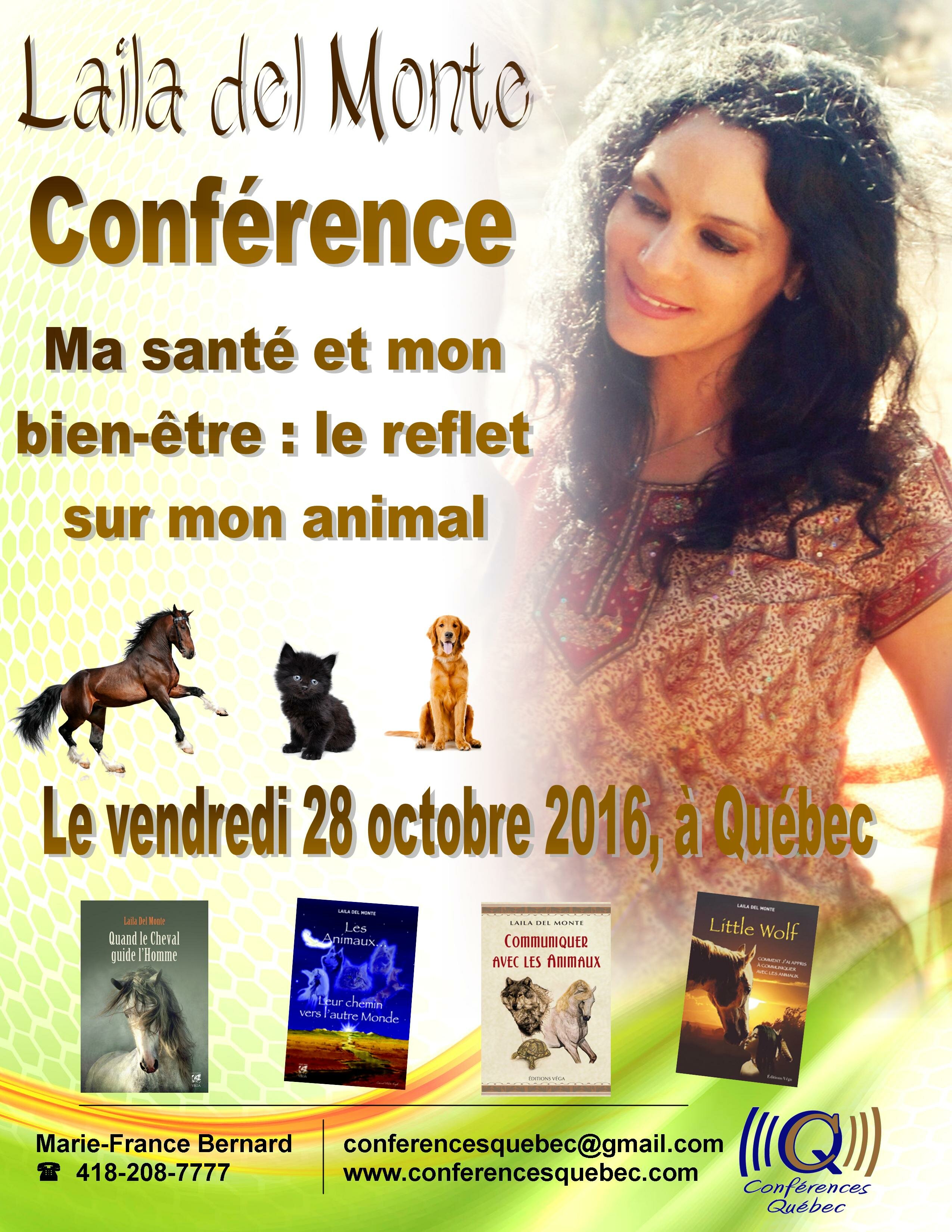 LAILA DEL MONTE SERA AU QUÉBEC pour un séminaire : Ma santé et mon bien-être : Le reflet sur mon animal Le vendredi 28 octobre 2016